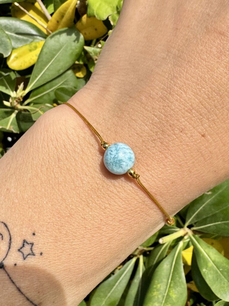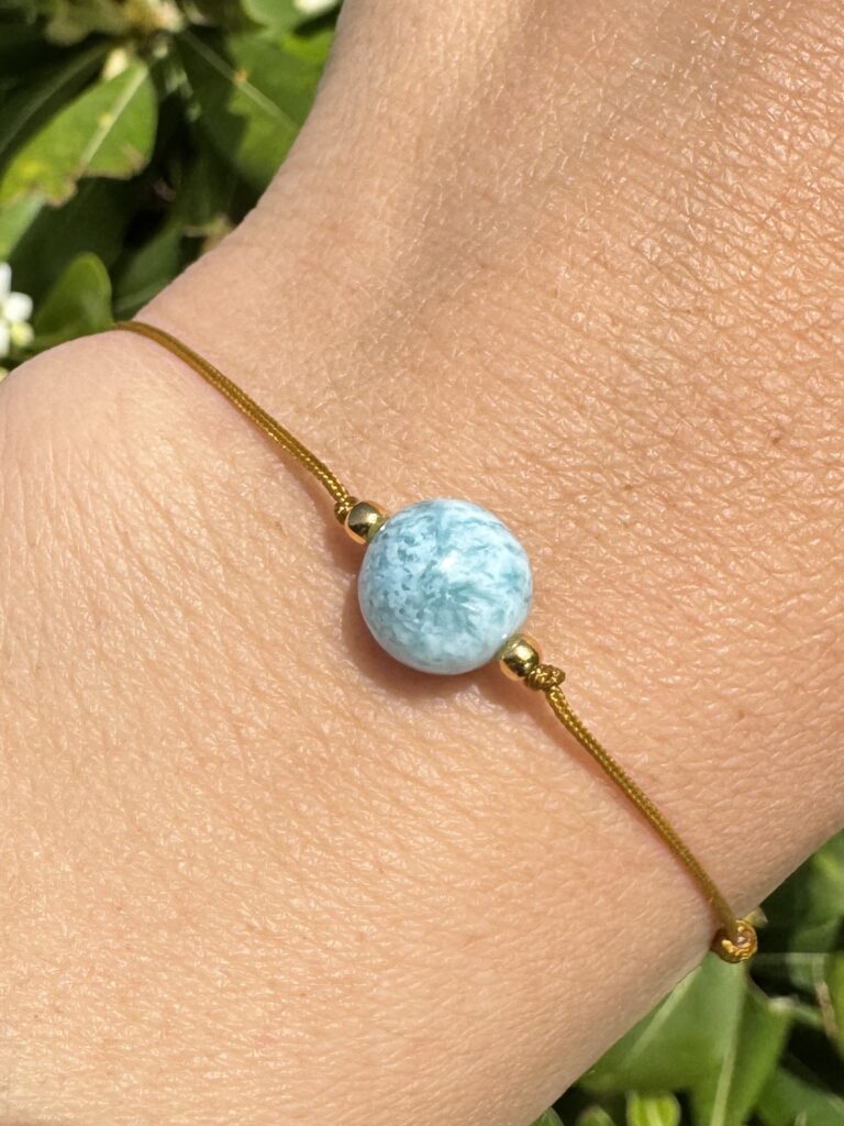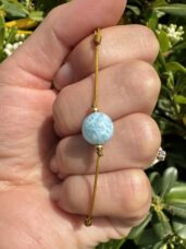 Jemný. Nenápadný. Jakmile ho nasadíš, splyne s tebou, jako by na ruce nebyl. A přesto ho ucítíš pokaždé, když se na něj podíváš. Jeden kamínek Larimaru jako jeden malý kousek Karibiku, který si vezmeš s sebou kamkoliv. Univerzální, každodenní nošení. Možná je to ten pravý právě pro tebe.
