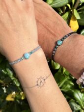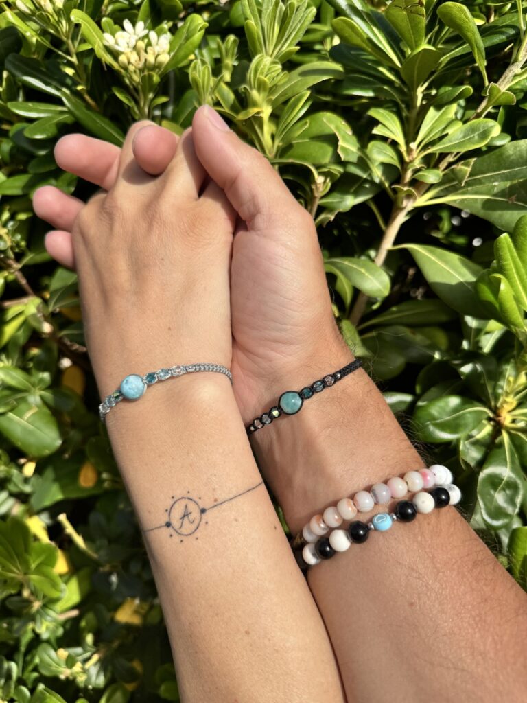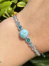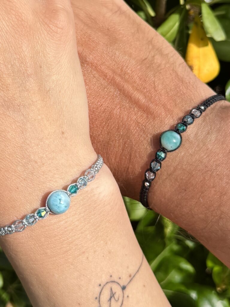 Spojení, které je vidět. Dva náramky, které spolu ladí… stejně jako vy. Larimar v kombinaci s jemnými odlesky speciálně vybroušených krystalů, vytváří něco víc než jen šperk. Vytváří pocit. Blízkosti. Jiskry. Přitažlivosti. Každý detail má svůj význam. A možná právě tenhle bude patřit vám.