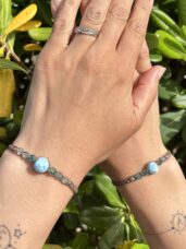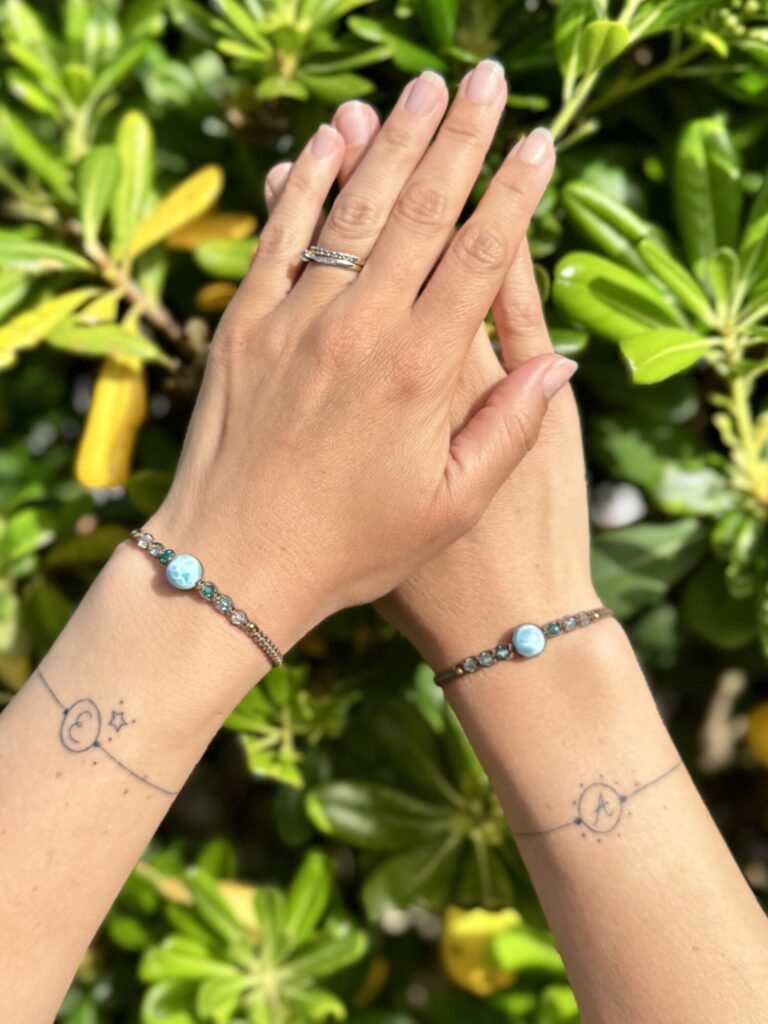 Jsou vztahy, které nejsou náhoda. Dva náramky. Každý jiný… a přesto dokonale sladěné. Larimar doplněný o jemné, speciálně vybroušené krystaly, které zachytí světlo stejně jako vaše společné momenty. Pro chvíle, kdy se smějete. Pro chvíle, kdy držíte při sobě. Pro všechno mezi tím. Není to jen šperk. Je to připomínka, že někde je člověk, který tě opravdu zná. Přemýšlej o tom, jestli to není ten kousek, který chcete nosit spolu.